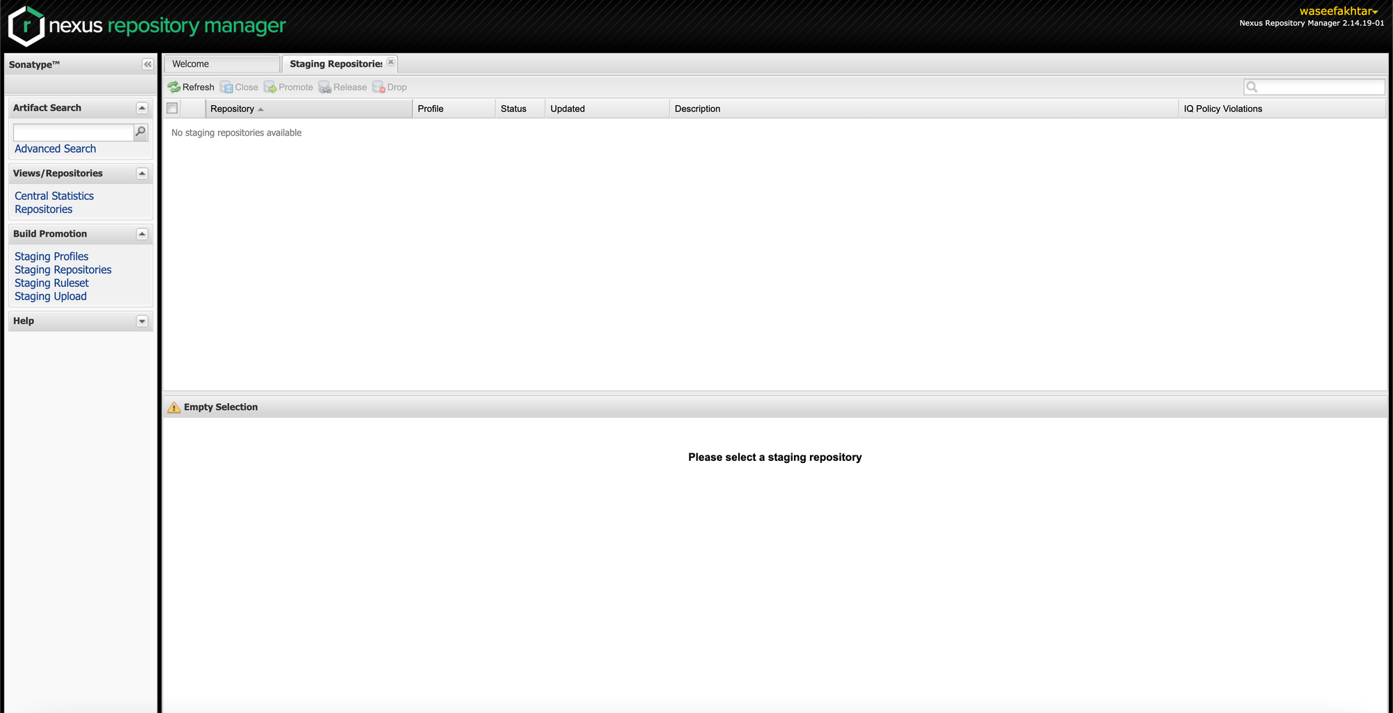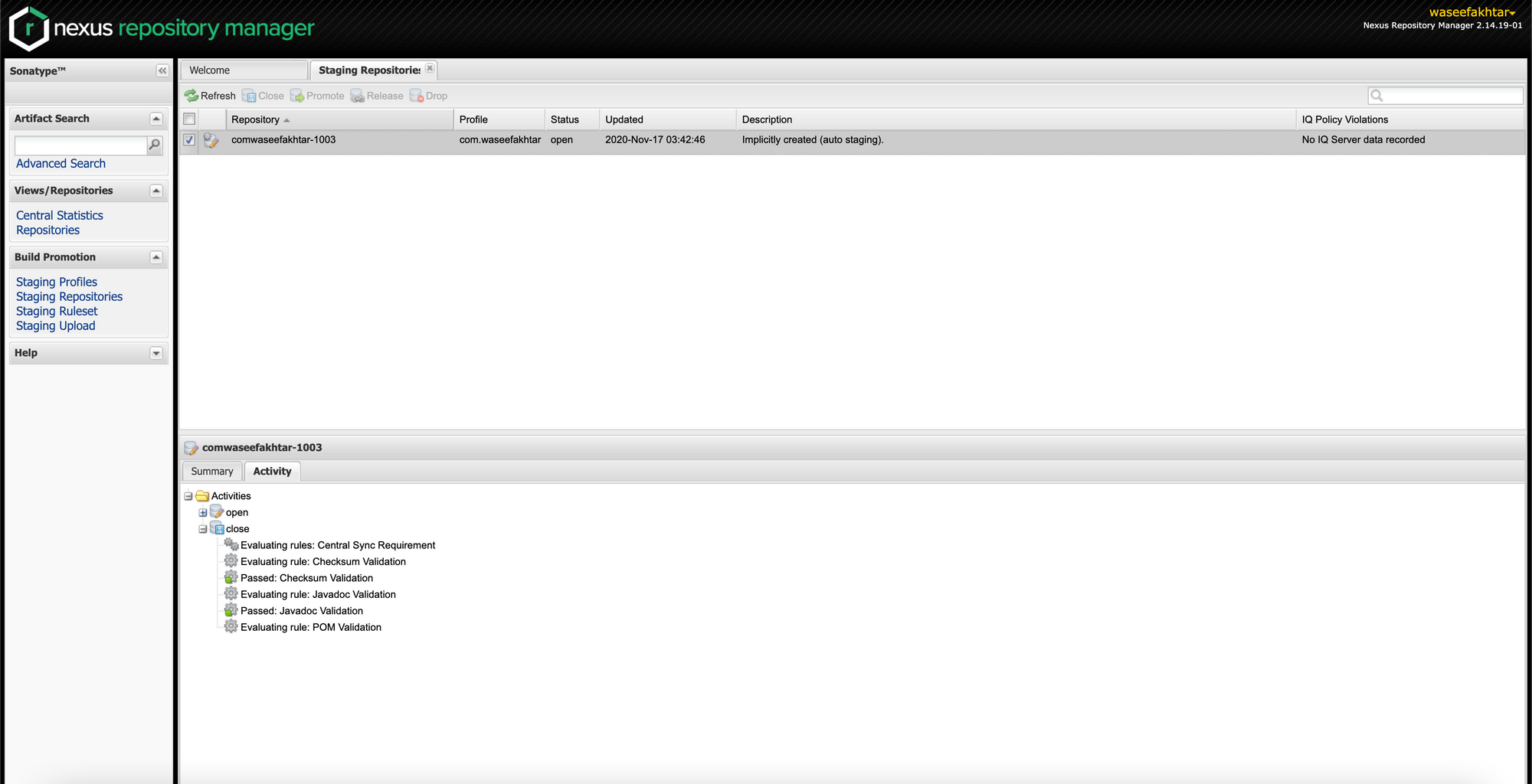 Release staged artifacts into repository ‘Releases’