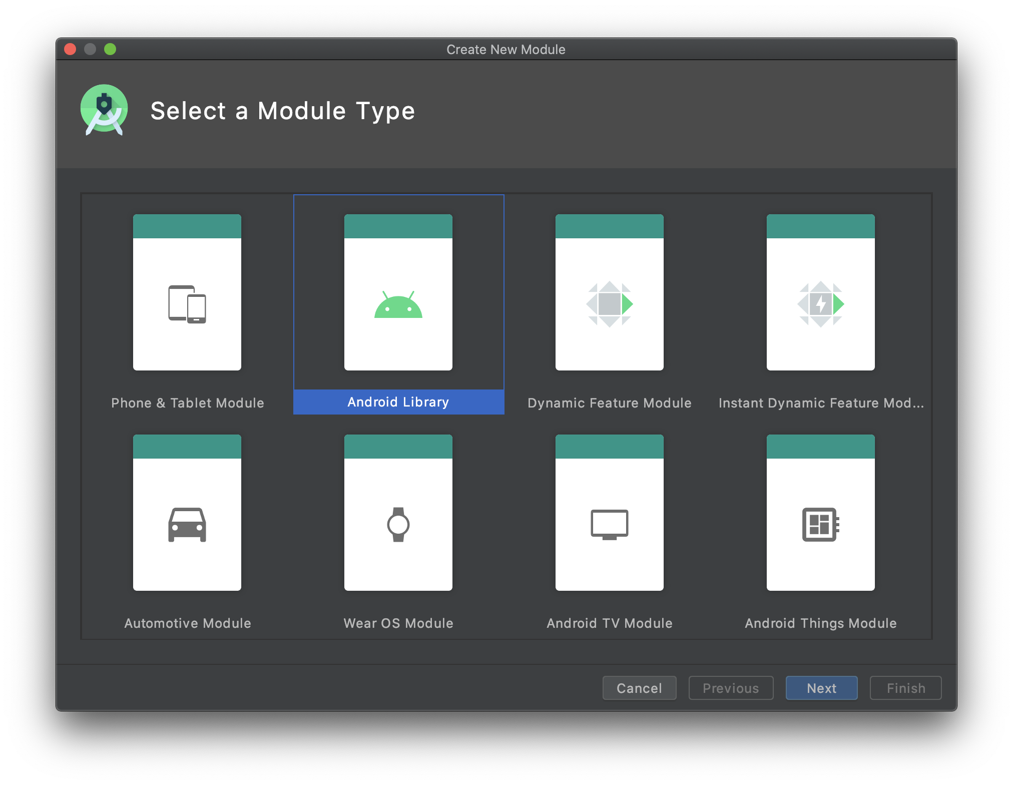 - Select Android Library.