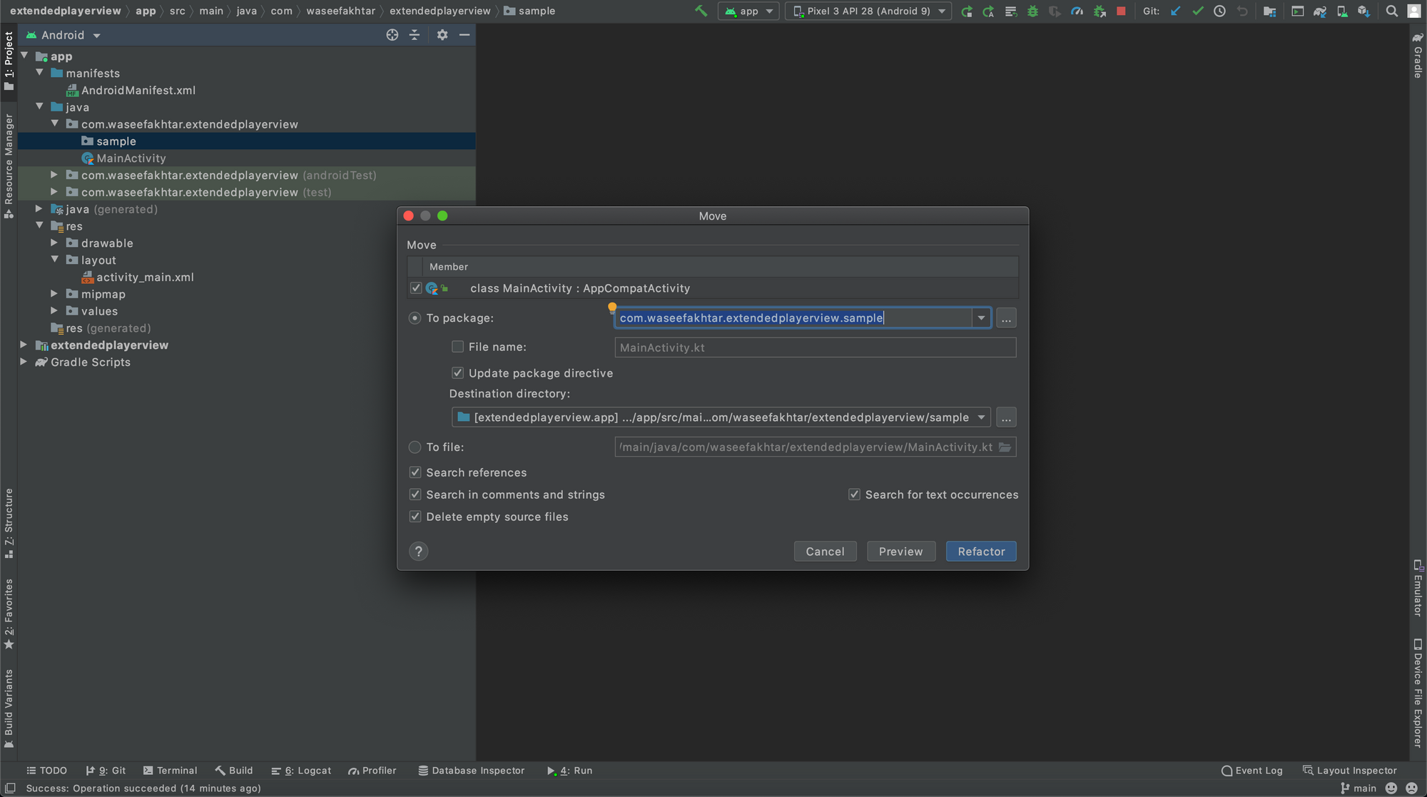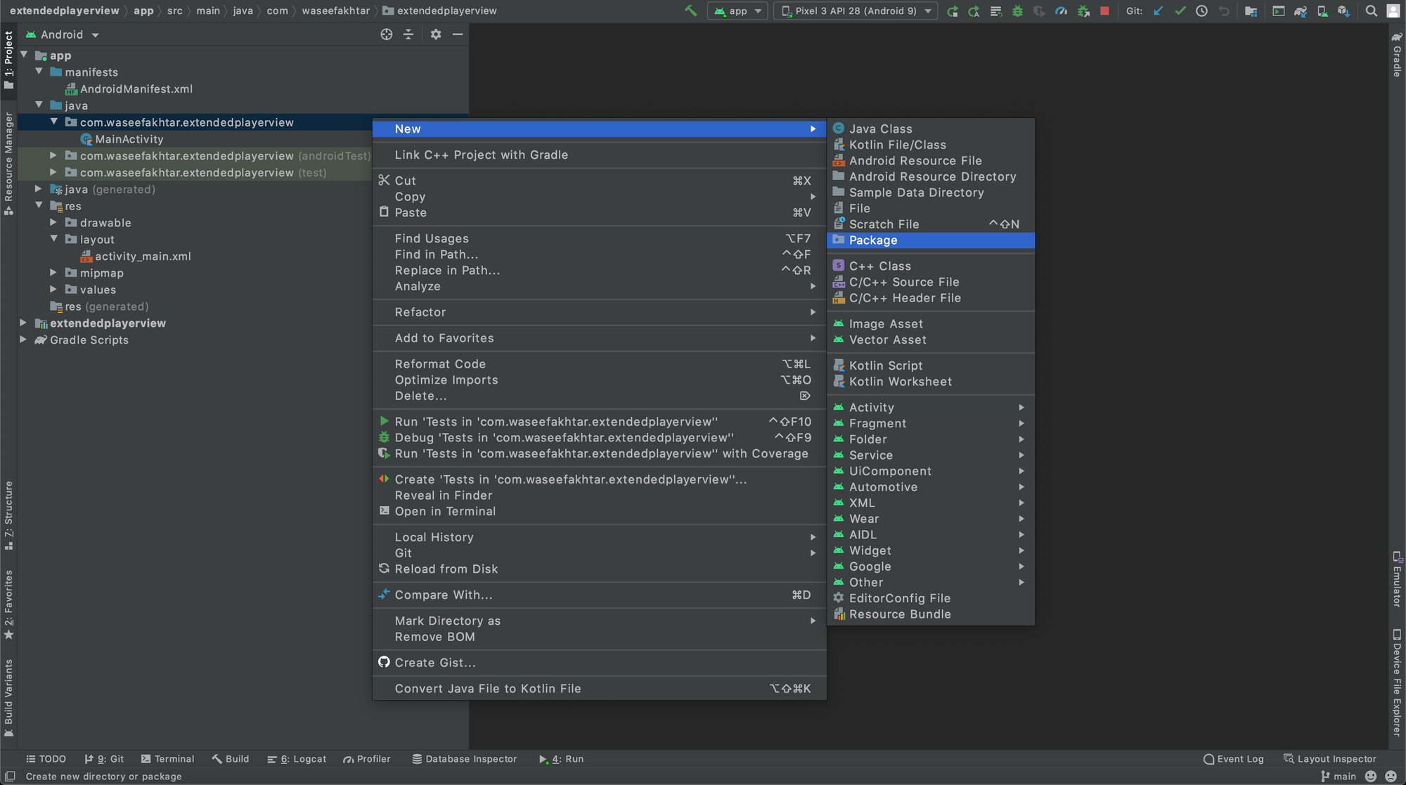 - Now cut MainActivity (Cmd + X), and